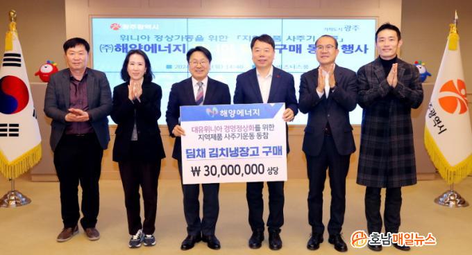 ±¤ÁÖ±¤¿ª½Ã(½ÃÀå °±âÁ¤)´Â 29ÀÏ ¿ÀÈÄ ½Ãû ºñÁî´Ï½º·ë¿¡¼ °±âÁ¤ ½ÃÀå, ÇØ¾ç¿¡³ÊÁö Á¤È¸ ´ëÇ¥, ¿À±¤È£ ÀÌ¿¡½ºÁö(ESG)°æ¿µº»ºÎÀå µîÀÌ Âü¼®ÇÑ °¡¿îµ¥ À§´Ï¾Æ µõä ±¸¸Å ¿îµ¿ µ¿ÂüÇà»ç¸¦ °¡Á³´Ù.