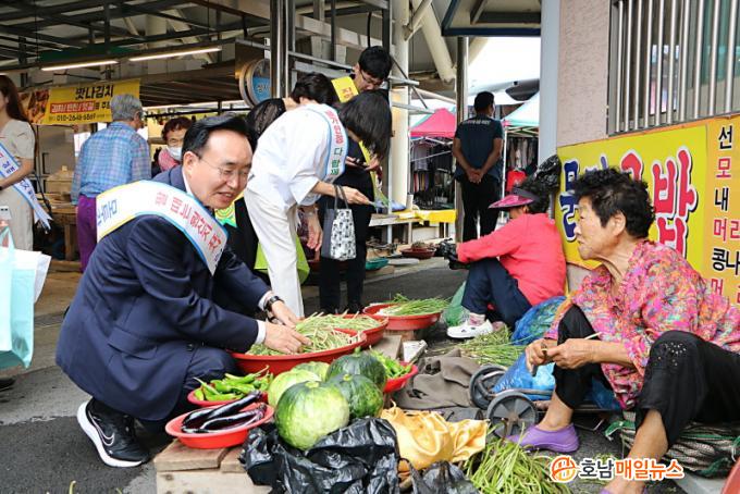 »çÁø¼³¸í : À±º´Å ½ÃÀåÀÌ Áö³ÇØ Ãß¼® ¸íÀý Àü ³ªÁÖ¸ñ»ç°íÀ»½ÃÀå¿¡¼ ÀüÅë½ÃÀå À庸±â Çà»ç¿¡ Âü¿©ÇØ »óÀÎÀ» °Ý·ÁÇϰí ÀÖ´Ù.