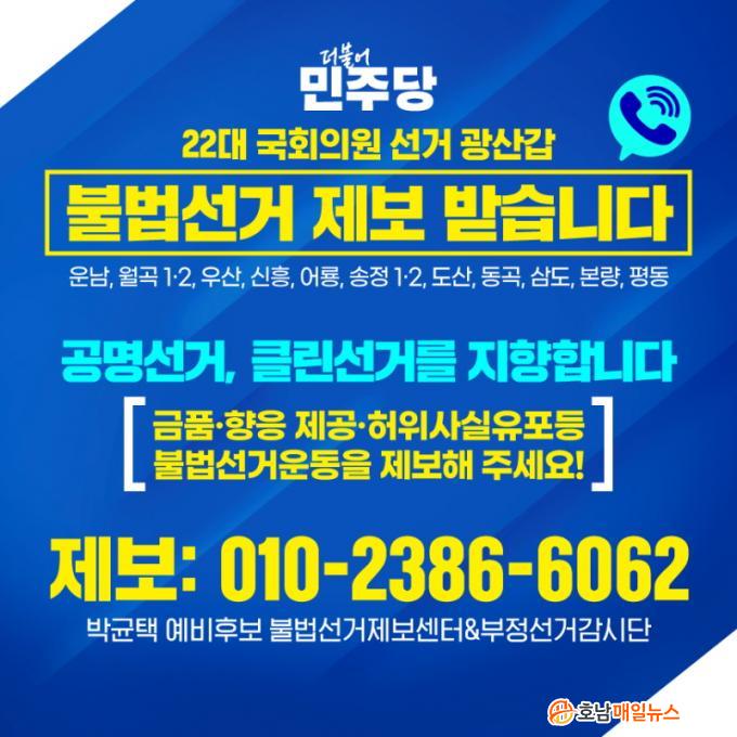 ¹Ú Èĺ¸ ¼±´ëº»ºÎ´Â ¡°À̹ø ±¹È¸ÀÇ¿ø ¼±°Å´Â ½ÃÀÛºÎÅÍ ¼±°ÅÅõÇ¥ Á¾·á±îÁö °ø¸í¼±°Å, Ŭ¸°¼±°Å¸¦ ÁöÇâÇÏ¸ç ±× ¾î¶°ÇÑ ºÒ¹ý ¼±°Åµµ ¿ë³³ µÇ¾î¼´Â ¾ÈµÈ´Ù¡±¸ç ¡°À̹ø ¼±°Å¸¦ ÅëÇØ ±¤»êÁö¿ª¿¡ Á¤ÀÇ¿Í »ó½ÄÀÌ »ì¾ÆÀÖ´Â Åõ¸íÇÏ°í °øÁ¤ÇÑ ¼±°Å¹®È°¡ Á¤ÂøµÉ ¼ö ÀÖµµ·Ï ³ë·ÂÇϰڴ١±´Â ÀÇÁö¸¦ ÇÇ·ÂÇß´Ù.