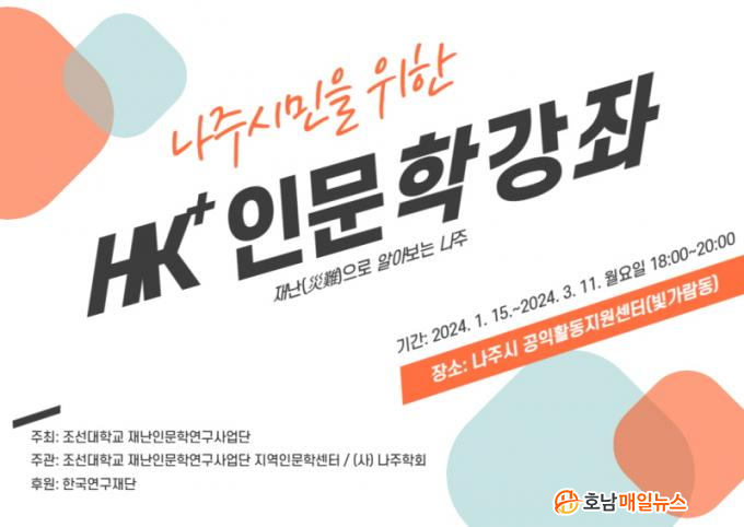 »ç´Ü¹ýÀÎ ³ªÁÖÇÐȸ´Â Áö¿ª¹ÎµéÀÇ ¿ª»ç¿Í ¹®È, Àι®ÇÐÀû ¿ª·®À» Çâ»ó½Ã۱â À§ÇØ ´Ù¾çÇÐ Çмú´ëȸ ¹× °ÀǸ¦ ÁøÇàÇϰí ÀÖ´Ù. Áö³ÇØ¿¡µµ ¡¸2023 È£³²Çѱ¹ÇÐ °Á ¹× Çмú´ëȸ Áö¿ø»ç¾÷¡¹¿¡ ¼±Á¤µÇ¾î (Àç)Çѱ¹ÇÐÈ£³²ÁøÈï¿øÀÇ ÈÄ¿øÀ¸·Î 10¿ù 24ÀϺÎÅÍ 12¿ù±îÁö ¡®¸»¸ñÀåÅÍ °¨³ª¹«¿¡¼ ¹è¿ì´Â µ¿ÇÐÀÇ ÁöÇý¡¯°Á¸¦ ¿î¿µÇÑ ¹Ù ÀÖ´Ù.