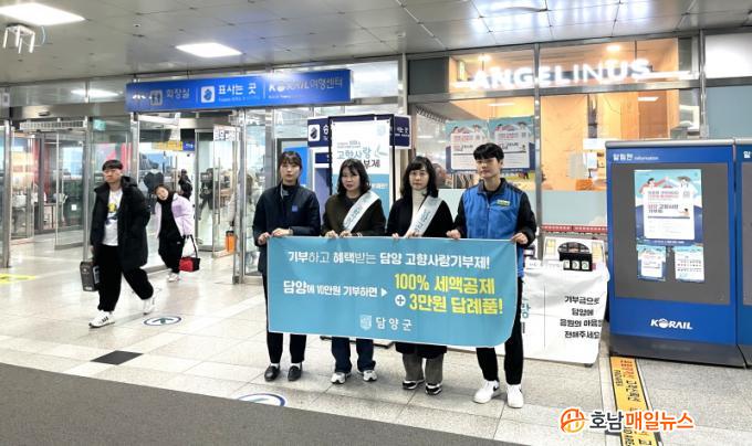 ´ã¾ç±º¿¡ µû¸£¸é, À̹ø Ä·ÆäÀÎÀº ÀÛ³â Ãß¼®¿¡ À̾î KTX ±¤ÁÖ¼ÛÁ¤¿ª ¿©Ç༾ÅÍ¿ª(¼¾ÅÍÀå °±¤¼®) ¿ª³»¿¡¼ ÁøÇàÇßÀ¸¸ç, ¿ÃÇØ¿¡´Â ¿ª ³»¿¡ °íÁ¤Çü ¹è³Ê¸¦ ºñÄ¡Çϰí, È«º¸ ÆÐ³Î¿¡ ´ã¾ç±º °íÇâ»ç¶û±âºÎÁ¦ È«º¸¿µ»óÀ» »ó½Ã ¼ÛÃâÇÏ´Â µî ´Ù¹æ¸éÀÇ Çù·ÂÀÌ ÀÌ·ç¾îÁö¸ç ²ö²öÇÑ »ó»ýÇù·ÂÀÇ ¸ð½ÀÀ» º¸¿´´Ù.