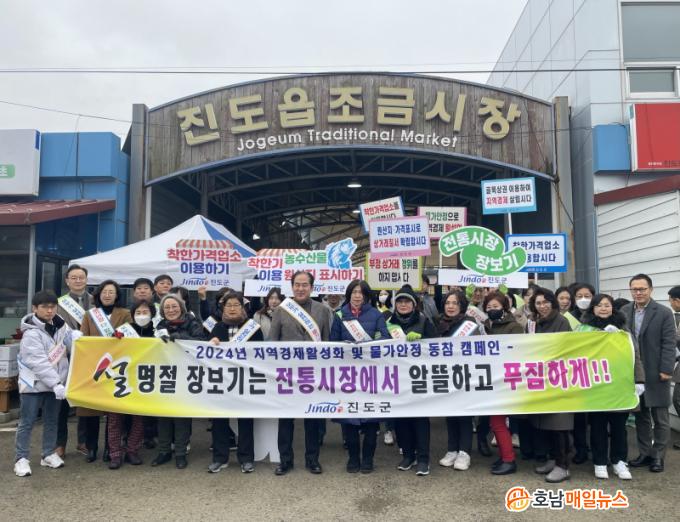 À̳¯ ±èÈñ¼ö Áøµµ±º¼ö¿Í °£ºÎ °ø¹«¿øÀ» Æ÷ÇÔÇÑ °ü°è °ø¹«¿ø, ¼ÒºñÀÚ °¨½Ã¿ø µî 60¿©¸íÀÌ Âü¿©ÇØ ÁøµµÀ¾ Á¶±Ý½ÃÀå ÀÔ±¸¿¡¼ ÀüÅë½ÃÀå À庸±â ¿îµ¿À» ÆîÃÆ´Ù.¶ÇÇÑ ½ÃÀå¿¡¼ ÆÇ¸Å ÁßÀÎ ±¼, Á¶±â, ½ô¹ðÀÌ, Àå´ë, º´¾î µîÀÇ ¼ö»ê¹°°ú ¶±, °úÀÏ µîÀ» Á÷Á¢ ±¸¸ÅÇÏ¸ç »óÀεéÀÇ ¾Ö·Î»çÇ×À» ûÃëÇÏ°í °Ý·ÁÇß´Ù.