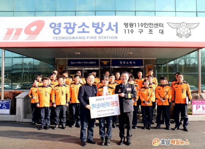[È£³²¸ÅÀÏ´º½º = ±è±Ý´ö ±âÀÚ] ¿µ±¤±º ÅëÇÕ¹æÀ§ÇùÀÇȸ(ÀÇÀå °Á¾¸¸ ¿µ±¤±º¼ö)´Â Áö³ 7ÀÏ ¼³ ¸íÀýÀ» ¾ÕµÎ°í ¿µ±¤¼Ò¹æ¼, 6ÇØ¾È°¨½Ã±âµ¿´ë´ë, ¿¹ºñ±º Áö¿ª´ë¸¦ ¹æ¹®ÇÏ¿© Áö¿ª¹æÀ§Å¼¼ È®¸³°ú ±º¹Î ¾ÈÀüÀ» À§ÇØ ÃÖ¼±À» ´ÙÇϰí ÀÖ´Â ´ë¿øµéÀ» °Ý·ÁÇϰí À§¹®±ÝÀ» Àü´ÞÇß´Ù.