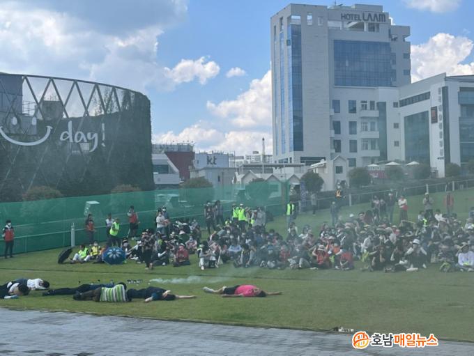 ¾Õ¼ µ¿±¸´Â Áö³ÇØ 6¿ù Àç³´ëÀÀ ¾ÈÀüÇѱ¹ÈÆ·Ã 1ȸÂ÷¿¡ »õ·Ó°Ô µµÀÔµÈ ÈÆ·Ã À¯ÇüÀÎ ¡®°ø¿¬Àå ¾ÈÀü»ç°í ¹× ÀÎÆÄ ¹ÐÁý »ç°í¡¯¸¦ °¡Á¤ÇØ Åä·ÐÈÆ·Ã°ú ÇöÀåÈÆ·ÃÀ» ¿¬°èÇØ ½Ç½ÃÇß´Ù. ÇØ´ç ÈÆ·Ã¿¡´Â 21°³ÀÇ ±â°ü°ú ´Üü°¡ Âü¿©ÇØ À¯°ü ±â°ü°£ Çù·Âü°è¸¦ °ÈÇϰí Áö¿ªÁֹΠ700¿© ¸íÀÌ ´ë±Ô¸ð ÈÆ·Ã¿¡ Âü¿©ÇØ ±¹¹ÎÀÇ ¾ÈÀüÀÇ½Ä Á¦°í¿¡ Èû¾´ Á¡À» ³ôÀÌ Æò°¡¹Þ¾Ò´Ù.