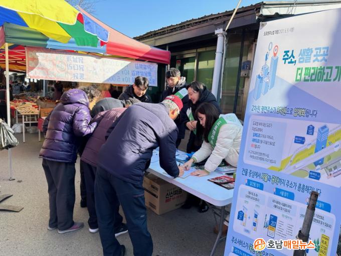 ´ã¾ç±ºÀº ÀüÅë½ÃÀåÀ» ãÀº ¹æ¹®°´À» ´ë»óÀ¸·Î È«º¸ Ã¥ÀÚ¿Í ¹°Ç°À» ¹èºÎÇÏ°í ¿ì¸® Áý µµ·Î¸íÁÖ¼Ò ½áº¸±â Çà»ç¸¦ ÁøÇàÇØ ¿Ã¹Ù¸¥ Ç¥±â ¹æ¹ýÀ» ¼³¸íÇÏ´Â µî µµ·Î¸íÁÖ¼Ò »ç¿ëÀ» Àû±Ø È«º¸Çß´Ù.