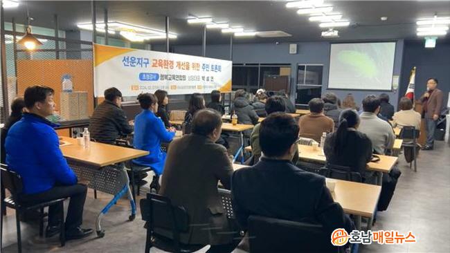 ¹Ú ¿¹ºñÈ帴 À̳¯ ¿ÀÈÄ 8½Ã ±¤»ê±¸ »ç)¼Ò»ó°øÀνÅÈï°³¹ß¿ø¿¡¼ ¼±¿îÁö±¸ Çкθð ¸ðÀÓ ÁÖÃÖ·Î ÁøÇàµÈ Åä·Ðȸ¿¡ Âü¼®ÇØ ¹Ú¼º¿¬ ÃÊû °»ç(Çູ±³À°¿¬ÇÕȸ »óÀÓ´ëÇ¥)¿¡ ÀÌ¾î ¼±¿îÁö±¸ ±³À°È¯°æ °³¼± ¹æ¾È¿¡ ´ëÇØ ¹¯´Â Çкθð, ±âÀÚÀÇ Áú¹®¿¡ ´äÇß´Ù.