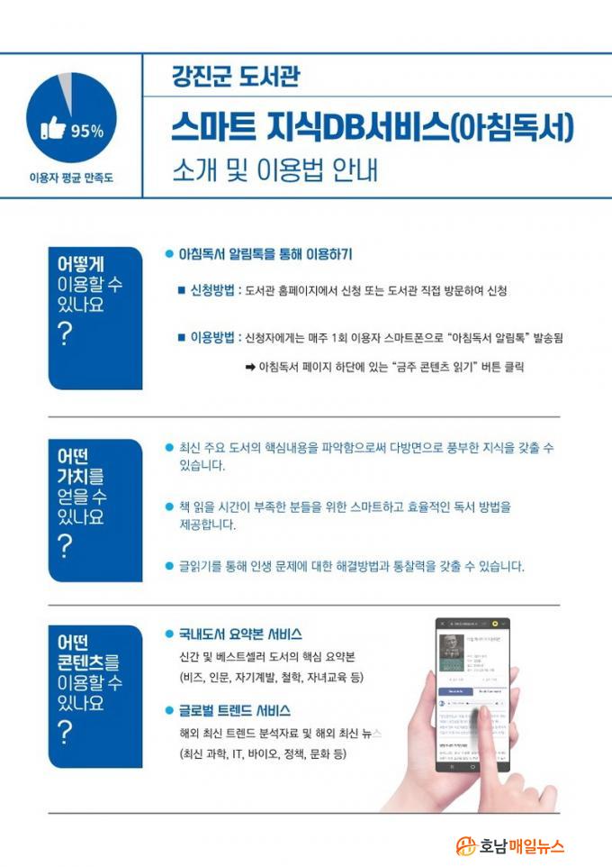 2024³â 2¿ùºÎÅÍ 2025³â 1¿ù±îÁö 1³â°£ ¾Ë¸²ÅåÀ» ¹Þ¾Æº¼ ¼ö ÀÖÀ¸¸ç, ½Åû´ë»óÀº °Áø±º¹ÎÀ¸·Î ÀοøÀº 700¸íÀÌ´Ù. ¾ÆÄ§µ¶¼ ¾Ë¸²Åå Èñ¸ÁÀÚ´Â °Áø±ºµµ¼°ü ´©¸®Áý(https://www.gjlib.go.kr.)À» ÅëÇØ ½ÅûÇϰųª µµ¼°ü¿¡ Á÷Á¢ ¹æ¹®ÇÏ¸é µÈ´Ù.