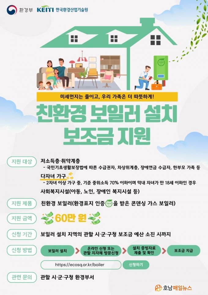 ÀÌ¿¡ µû¶ó µ¿±¸´Â ģȯ°æ º¸ÀÏ·¯ ¼³Ä¡¡¤±³Ã¼ Áö¿øÀ» ¿øÇÏ´Â Àú¼ÒµæÃþ°ú ´ÙÀÚ³à °¡±¸(ÁßÀ§¼Òµæ 70% ÀÌÇÏ) µîÀ» ´ë»óÀ¸·Î ¿¹»ê Çѵµ ³»¿¡¼ °¡±¸´ç 60¸¸ ¿øÀ» Áö¿øÇÒ °èȹÀÌ´Ù.