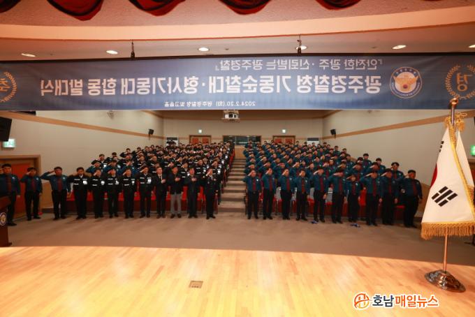 À̹ø ¹ß´ë½ÄÀ» ÅëÇØ ±¤ÁÖ°æÂûû ±âµ¿¼øÂû´ë(ÃÑ 97¸í, 12°³ÆÀ), Çü»ç±âµ¿´ë(ÃÑ 79¸í, 2°³ ÆÀ 1°³ Ìõ)°¡ ÇÑ ÀÚ¸®¿¡ ¸ð¿© ÀڽŵéÀÇ ÀÓ¹«¿Í ¿ªÇÒÀ» µÇ»õ±â´Â ÇÑÆí, ±¹¹ÎÀÇ ¾ÈÀüÀ» À§ÇùÇÏ´Â ¿äÀεéÀ» ¹ß ºü¸£°Ô ¿¹¹æÇÏ°í °¢Á¾ ¹üÁË¿¡ Àû±ØÀûÀ¸·Î ´ëÀÀÇÏ´Â µî ±¹¹ÎÀÇ Æò¿ÂÇÑ ÀÏ»óÀ» ÁöŰ´Â µ¥ ÃÖ¼±ÀÇ ³ë·ÂÀ» ±â¿ïÀÌÀÚ°í ¶æÀ» ¸ð¾ÒÀ¸¸ç,