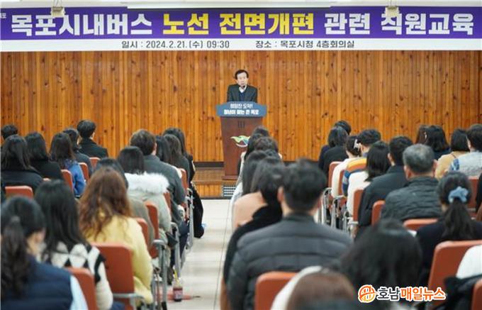 [È£³²¸ÅÀÏ´º½º = ±è±Ý´ö ±âÀÚ] ¹ÚÈ«·ü ¸ñÆ÷½ÃÀåÀÌ ¿À´Â 26ÀÏ ½Ã³»¹ö½ºÀÇ Àü¸é ³ë¼±°³Æí ½Ã¹ü¿î¿µÀ» ¾ÕµÎ°í, 21ÀÏ ÁøÇàµÈ ÇöÀå ¾È³» ½Ã Á÷¿øÀ» ´ë»ó ±³À°¿¡ ¾Õ¼ ½Ã¹Î ºÒÆí ÃÖ¼Òȸ¦ ´çºÎÇß´Ù.