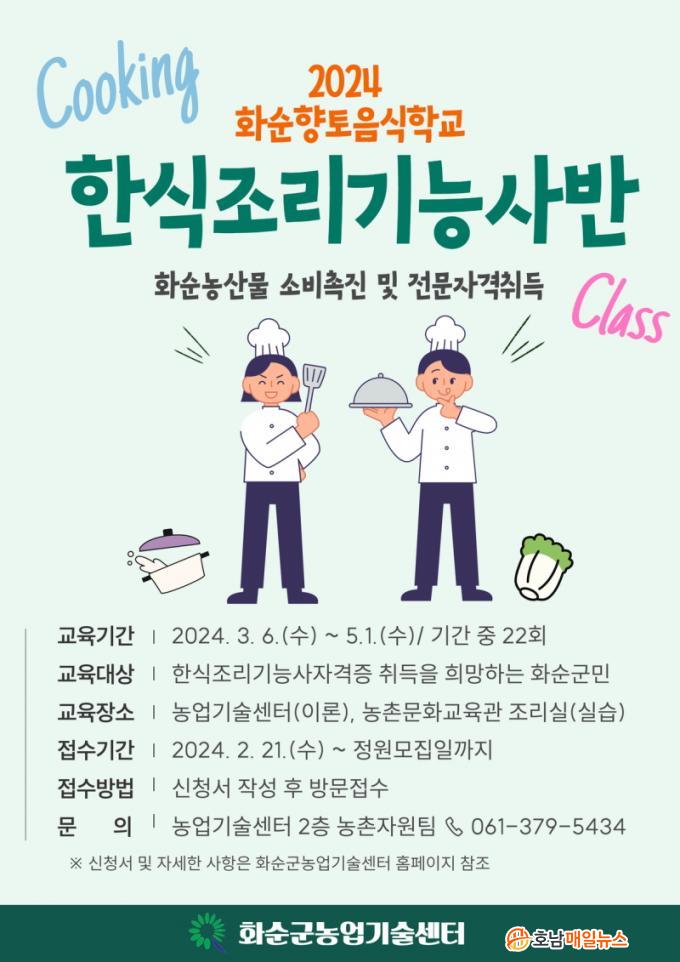 ÇѽÄÁ¶¸®±â´É»ç ¹ÝÀº 3¿ù 6ÀÏ °³°ÇÏ¿© 5¿ù 1ÀϱîÁö ÃÑ 22ȸ(ÁÖ 3ȸ) 3½Ã°£¾¿ ÁøÇàµÇ¸ç ±³À° ³»¿ëÀº ½ÄǰÀ§»ý, ¾ÈÀü°ü¸® µî À̷б³À°°ú µÎºÎÁ¶¸², ´õ´ö±¸ÀÌ µî 33Á¾ ½Ç±â±³À°À¸·Î ÇѽÄÁ¶¸®±â´É»ç ÀÚ°ÝÁõ ÃëµæÀ» À§ÇØ ¹Ýµå½Ã ¾Ë¾Æ¾ß ÇÒ ³»¿ëÀ¸·Î ÁøÇàµÉ ¿¹Á¤ÀÌ´Ù.