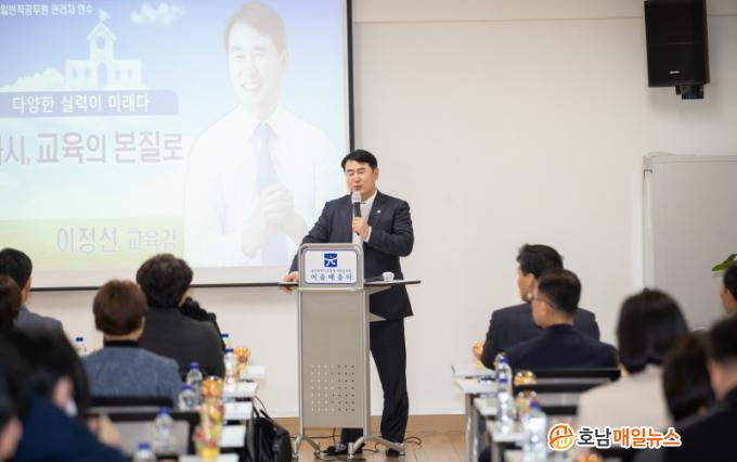 ÀÌÁ¤¼± ±³À°°¨Àº ¡°¹Ì·¡±³À°ÀÇ º¯È¿¡ ´ëÀÀÇϱâ À§ÇØ Áß°£ °ü¸®ÀÚÀÇ ¼ÒÅë´É·Â°ú ¸®´õÀÇ ¿ªÇÒÀÌ ¸Å¿ì Áß¿äÇÏ´Ù¡±¸ç ¡°¾ÕÀ¸·Îµµ ±¤ÁÖ±³À° Á¤Ã¥¿¡ Á¤È®ÇÑ ÆÇ´Ü·ÂÀ» Ű¿ì°í ±³À°¹ßÀü¿¡ Ãʼ®ÀÌ µÉ ¼ö ÀÖµµ·Ï ÇàÁ¤°ü¸®ÀÚÀÇ ¿ª·® °È¸¦ À§ÇÑ ´Ù¾çÇÑ ±³À°À» ÃßÁøÇϰڴ١±°í ¸»Çß´Ù.