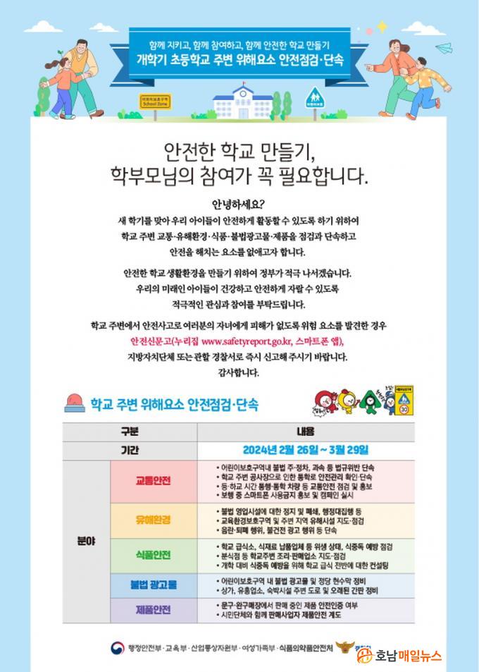 ºÐ¾ßº° ÁÖ¿ä Á¡°Ë ³»¿ëÀ¸·Î´Â ±³Åë¾ÈÀü ºÐ¾ß ¡ã¾î¸°À̺¸È£±¸¿ª³» ºÒ¹ý ÁÖ¡¤Á¤Â÷, °ú¼Ó µî ¹ý±ÔÀ§¹Ý ´Ü¼Ó ¡ãÇб³ ÁÖº¯ °ø»çÀåÀ¸·Î ÀÎÇÑ ÅëÇзΠ¾ÈÀü°ü¸® È®ÀΡ¤´Ü¼Ó ¡ãµîÇϱ³ ½Ã°£ ÅëÇࡤÅëÇÐ Â÷·® µî ±³Åë¾ÈÀü Á¡°Ë ¹× È«º¸ ¡ãº¸Çà Áß ½º¸¶Æ®Æù »ç¿ë±ÝÁö È«º¸ ¹× Ä·ÆäÀÎ ½Ç½Ã µîÀÌ´Ù.