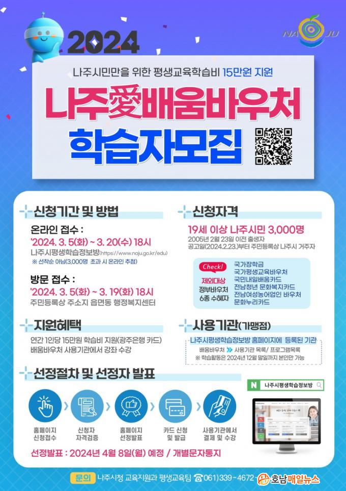 ³ªÁÖ½Ã(½ÃÀå À±º´ÅÂ)´Â ¿À´Â 3¿ù 5ÀϺÎÅÍ 20ÀϱîÁö ½Ã¹ÎÀÇ Æò»ýÇнÀ±Ç ÇâÀ¯¸¦ À§ÇÑ ¡®³ªÁÖäñ¹è¿ò¹Ù¿ìó¡¯ »ç¾÷ ½ÅûÀÚ¸¦ ¸ðÁýÇÑ´Ù°í 26ÀÏ ¹àÇû´Ù.