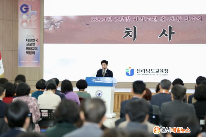 ±è´ëÁß ±³À°°¨Àº ¿µ¿¹·Î¿î ÈÆ․Æ÷ÀåÀ» ¹ÞÀº ¼ö»óÀÚ¿Í °¡Á·µé¿¡°Ô ±×µ¿¾ÈÀÇ Çå½Å°ú ³ë°í¿¡ Á¸°æ°ú °¨»çÀÇ ¸¶À½À» ÀüÇϸç, ¡°¾ÕÀ¸·Îµµ Àü³²±³À°ÀÇ ÁÖü·Î¼ Çб³ ÇöÀå¿¡¼ ½×¾Æ¿Â ³ëÇÏ¿ì¿Í ÁöÇý¸¦ ¡®Àü³²±³À° ´ëÀüȯ¡¯ÀÇ ±æ¿¡ ³ª´² ÁÖ½Ã±æ ¹Ù¶õ´Ù.¡±°í ¸»Çß´Ù.
