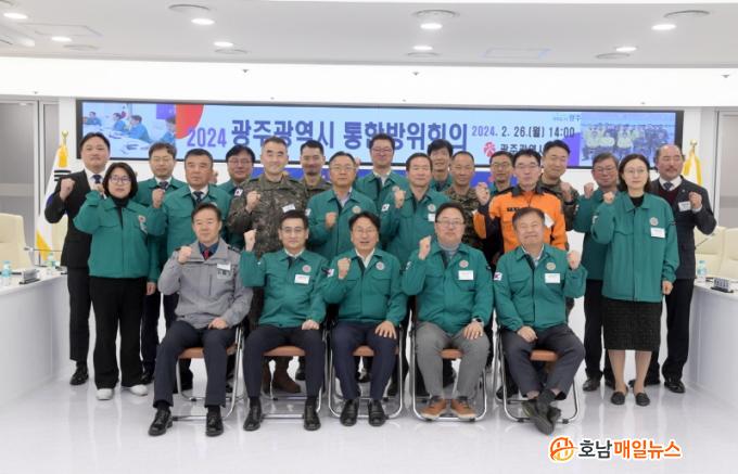 À̳¯ ȸÀÇ¿¡´Â ±¤ÁÖ½ÃÅëÇÕ¹æÀ§ÇùÀÇȸ ÀÇÀåÀÎ ° ½ÃÀåÀ» ºñ·ÔÇØ Á¤¹«Ã¢ ±¤ÁÖ½ÃÀÇȸ ÀÇÀå, ÀÌÀÏ¿ë À°±º 31»ç´ÜÀå, 5°³ ÀÚÄ¡±¸ ûÀå, ±¤Áֽà ÅëÇÕ¹æÀ§ÇùÀÇȸ À§¿ø µîÀÌ Âü¼®Çß´Ù. À̳¯ ȸÀÇ¿¡¼´Â Áö³ÇØ ÅëÇÕ¹æÀ§ Áֿ伺°ú¿Í 2024³âµµ ÃßÁø¹æÇâÀ» °øÀ¯Çϰí, ±º»ç´ëºñż¼ Æò°¡ ¹× ´ëºñ¹æÇâ µî ±â°üº° ¹æÀ§Å¼¼¸¦ ½Éµµ ÀÖ°Ô ³íÀÇÇß´Ù.