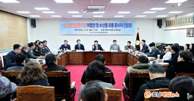 À̹ø °£´ãȸ¿¡´Â ±è°üÈ£ °ü±¤°æÁ¦À§¿øÀå°ú ¼Ò¼ÓÀ§¿øÈ¸ ÀÇ¿ø ¹× ÃÖ¿ø¼® ±âȹº¹ÁöÀ§¿øÈ¸ ºÎÀ§¿øÀåÀÌ Âü¼®ÇÏ¿´°í, ¸ñÆ÷½Ã ¼ö»ê»ê¾÷°ú Á¤±æ¼® °úÀå ¹× ¼Ò¼Ó °ø¹«¿ø°ú ¸ñÆ÷¼öÇù ±èÅÂÇü °æÁ¦»ó¹«À̻縦 ºñ·ÔÇÑ ¼öÇù °ü°èÀÚ ¹× ±ÙÇØ¾È°¸Á ¼±ÁÖÇùȸ µî 50¿© ¸íÀÇ ¸ñÆ÷ ¾î¾÷ °ü·Ã °ü°èÀÚµéÀÌ Âü¼®ÇÏ¿´´Ù.