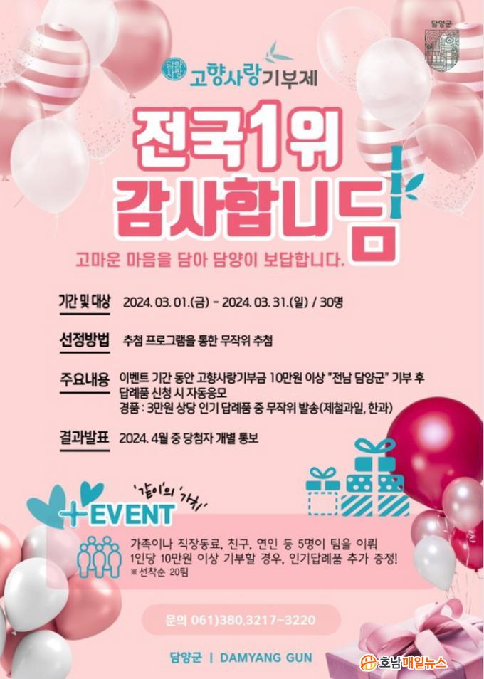 ´ã¾ç±º¿¡ µû¸£¸é, °íÇâ»ç¶û±âºÎÁ¦ À۳⠸ð±Ý 1À§¸¦ ´Þ¼ºÇÑ °Í¿¡ ´ëÇÑ °¨»çÀÇ ¶æÀ» ´ã¾Æ º¸´äÇÑ´Ù´Â Àǹ̿¡¼ À̺¥Æ®¸¦ ÃßÁøÇÏ°Ô µÇ¾úÀ¸¸ç, ±ºÀº ¿ÃÇØµµ Áö¼ÓÀûÀÎ ±âºÎ ¹®È È®»êÀ» À§ÇØ ´Ù¹æ¸éÀÇ ³ë·ÂÀ» ±â¿ïÀÏ ¿¹Á¤ÀÌ´Ù.