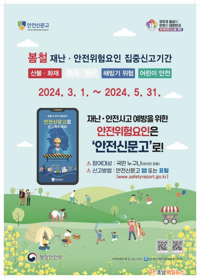 ÁýÁß½Å°í ±â°£¿¡´Â ¾ÈÀü½Å¹®°í ¾Û¿¡¼ ¡®ÁýÁß½Å°í ¹Ù·Î°¡±â¡¯ ¹× ¡®Äü¸Þ´º¡¯ÀÇ ÁýÁß ½Å°í ±â´ÉÀ» Ȱ¿ëÇØ ¼Õ½±°Ô ½Å°íÇÒ ¼ö ÀÖ´Ù. À̹ø º½Ã¶ ÁýÁß ½Å°í ´ë»óÀº ¡ãºÒ¹ý ¼Ò°¢ µî »êºÒ¡¤ÈÀç ¡ãÀÎÆÄ ¹ÐÁý µî ÃàÁ¦¡¤Çà»ç ¡ãºØ±«, ³«¼® µî ÇØºù±â À§Çè ¡ãÅëÇзÎ, ³îÀ̽ü³ µî ¾î¸°ÀÌ ¾ÈÀü ÃÑ 4°³ À¯ÇüÀÌ´Ù.