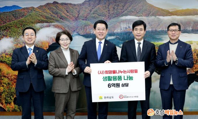 À̳¯ Àü³²µµÃ»¿¡¼ ¿¸° ±âŹ½Ä¿¡´Â ±è¿µ·Ï Àü³²µµÁö»ç, ±èÁ¤¾È ȸÀå, °¼ºÈÖ Àü³²»çȸ¼ºñ½º¿øÀå µîÀÌ Âü¼®Çß´Ù. ±âºÎ ǰ¸ñÀº Áֹ漼Á¦, ¼¤Çª, ¹Ùµð¿ö½Ã, ºñ´© µî 15Á¾À¸·Î ±¸¼ºµÈ 6¾ï ¿ø »ó´çÀÇ »ýȰ¿ëǰÀÌ´Ù. ±âʹÞÀº »ýȰ¿ëǰÀº Àü³²»çȸ¼ºñ½º¿øÀ» ÅëÇØ Ãë¾à°èÃþ°ú »çȸº¹Áö½Ã¼³ µî¿¡ Àü´ÞµÉ ¿¹Á¤ÀÌ´Ù.