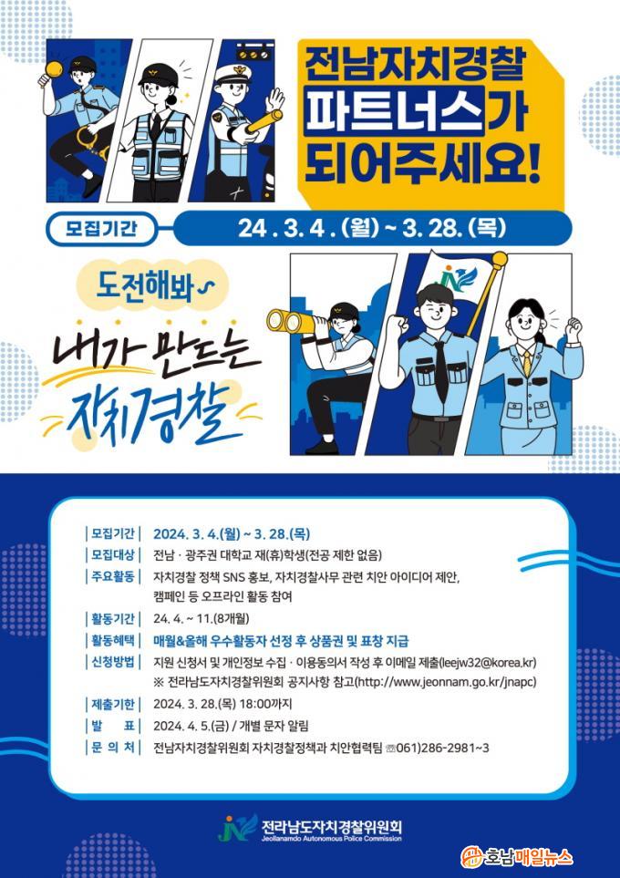 ÀÚÄ¡°æÂû¿¡ °ü½ÉÀÌ ¸¹°í È«º¸È°µ¿¿¡ Àû±ØÀûÀÎ ±¤ÁÖ¡¤Àü³² ´ëÇлýÀÌ¸é °³ÀÎ ¶Ç´Â ÆÀÀ» ±¸¼ºÇØ ´©±¸³ª Áö¿øÇÒ ¼ö ÀÖ´Ù. ½ÅûÀº Àü³²ÀÚÄ¡°æÂûÀ§¿øÈ¸ ´©¸®Áý(www.jeonnam.go.kr/jnapc)¿¡ Á¢¼ÓÇØ ¿Â¶óÀÎ ½Åû¼¸¦ ÀÛ¼ºÇÑ ÈÄ À̸ÞÀÏ·Î Á¦ÃâÇÏ¸é µÈ´Ù.