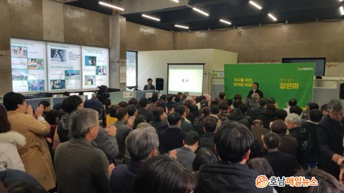 °Àº¹Ì Èĺ¸ ¼±°Å»ç¹«¼Ò °³¼Ò½Ä¿¡ 500¿© ¸íÀÌ Âü¼®ÇØ Çà»çÀåÀÌ ÀλêÀÎÇØ¸¦ ÀÌ·ð´Ù.