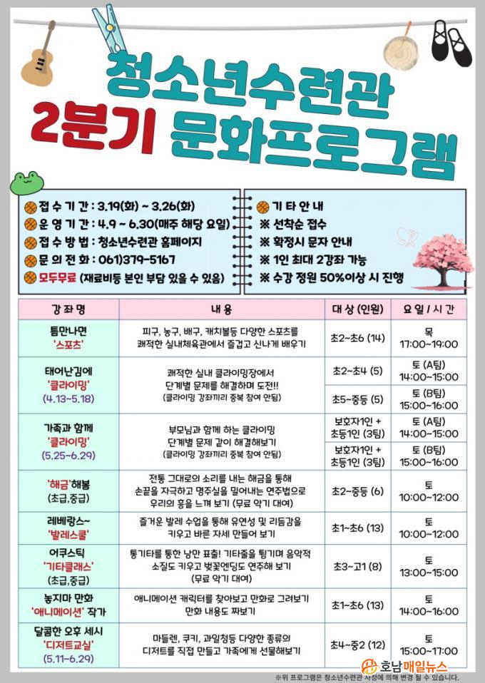 ±âŸ ÀÚ¼¼ÇÑ »çÇ×Àº ȼø±ºÃ»¼Ò³â¼ö·Ã°ü ´©¸®ÁýÀ» Âü°íÇϰųª 061)379-5167(¹®ÈÇÁ·Î±×·¥ ´ã´çÀÚ)·Î ¹®ÀÇÇÏ¸é µÈ´Ù.