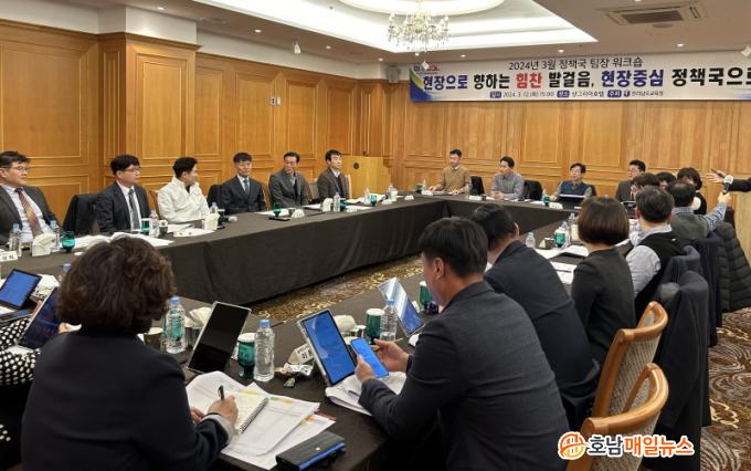Àü³²±³À°Ã»Àº 12ÀÏ ¸ñÆ÷ ¼§±×¸®¾Æ È£ÅÚ¿¡¼ º»Ã» Á¤Ã¥±¹ ±¹¡¤°úÀå ¹× ÆÀÀåµéÀ» ´ë»óÀ¸·Î ¿öÅ©¼óÀ» ¿°í, ¡®ÇöÀå Á᫐ Á¤Ã¥±¹¡¯À¸·Î ³ª¾Æ°¡±â À§ÇÑ °úÁ¦¿Í ¿ªÇÒ¿¡ ´ëÇØ ³íÀÇÇÏ´Â ½Ã°£À» °¡Á³´Ù.