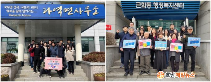 À̹ø ±³Â÷ ±âºÎ´Â °ú¿ª¸é°ú Ãáõ½Ã ±Ùȵ¿ Á÷¿ø °¢ 25¸íÀÌ ±âºÎ¿¡ ÀÚ¹ßÀûÀ¸·Î µ¿ÂüÇØ ³ª´®À» ½ÇõÇÏ°í °íÇâ»ç¶û±âºÎÁ¦ÀÇ È°¼ºÈ¸¦ ÇÔ²² ÀÀ¿øÇϱâ·Î Çß´Ù.