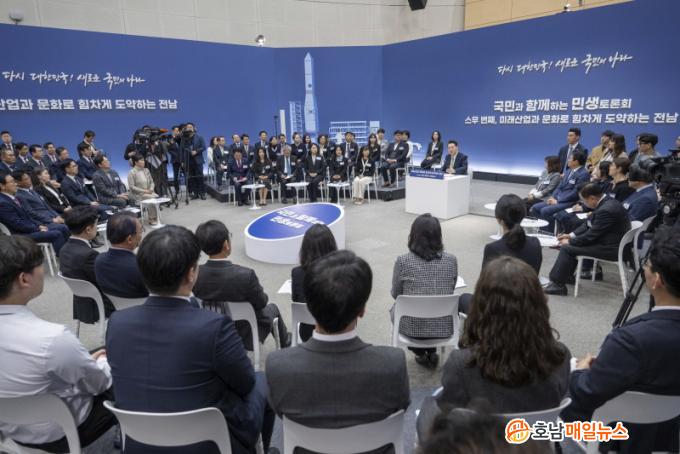 ¿À´Ã Åä·Ðȸ´Â ¹Ì·¡»ê¾÷ °ü·Ã ±â¾÷ÀÎ, Çкθð, Áö¿ªÁֹΠµî 100¿©¸íÀÌ Âü¼®ÇßÀ¸¸ç, ¿ìµ¿±â Áö¹æ½Ã´ëÀ§¿øÀå, ±è¿µ·Ï Àü³²µµÁö»ç µîÀÌ Âü¼®ÇÏ¿© Àü³²ÀÇ ¹ßÀü¹æÇâ°ú ¹Ì·¡»ê¾÷, ÀÎÇÁ¶ó¿¡ ´ëÇØ ½Éµµ ÀÖ´Â Åä·ÐÀ» ÁøÇàÇÏ¿´´Ù.