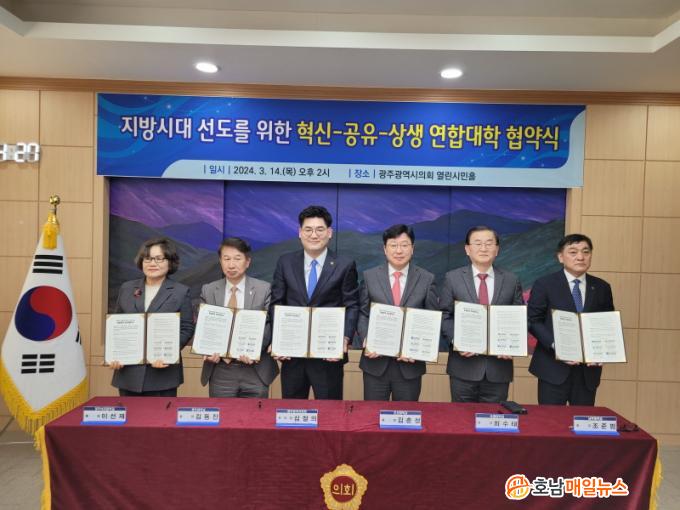 Á¶¼±´ëÇб³(ÃÑÀå ±èÃἺ)´Â 14ÀÏ ¿ÀÈÄ 2½Ã ±¤ÁÖ±¤¿ª½ÃÀÇȸ 4Ãþ ¿¸°½Ã¹ÎȦ¿¡¼ ¡®5°³´ëÇÐ ¾÷¹«Çù¾à½Ä¡¯À» ÁøÇàÇß´Ù. ÀÌ ÀÚ¸®¿¡´Â ±¤ÁÖ±¤¿ª½Ã °í±¤¿Ï ÇàÁ¤ºÎ½ÃÀå, ±¤ÁÖ±¤¿ª½ÃÀÇȸ ½ÉöÀÇ ºÎÀÇÀå, Àӹ̶õ ÇàÁ¤Â÷ÁöÀ§¿øÀåÀ» ºñ·ÔÇØ Á¶¼±´ë ±èÃἺ ÃÑÀå, ±¤ÁÖ´ë ±è°©¿ë ºÎÃÑÀå, ±¤ÁÖ¿©´ë À̼±Àç ÃÑÀå, ³²ºÎ´ë Á¶Áعü ÃÑÀå, ¼Û¿ø´ë ÃÖ¼öÅ ÃÑÀå µîÀÌ Âü¼®Çß´Ù.