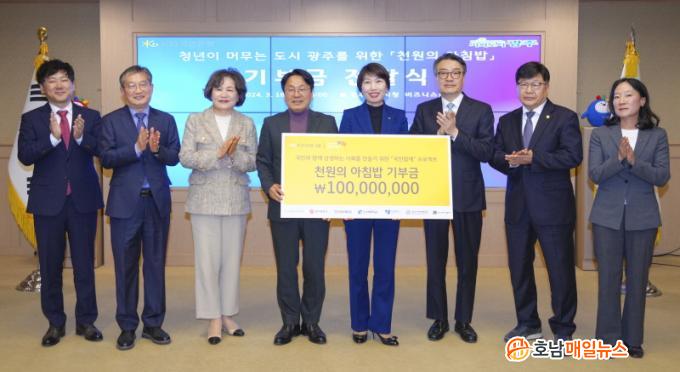 ±¤ÁÖ±¤¿ª½Ã(½ÃÀå °±âÁ¤)´Â 18ÀÏ ½Ãû ºñÁî´Ï½º·ë¿¡¼ °±âÁ¤ ½ÃÀå, ³ëÇöÁÖ KB±¹¹ÎÀºÇà È£³²Áö¿ª±×·ì´ëÇ¥, ±èº´ÀÎ Àü³²´ë ºÎÃÑÀå, ÀüÁ¦¿ Á¶¼±´ë ºÎÃÑÀå, ¹Ú»óö È£³²´ë ÃÑÀå, À̼±Àç ±¤ÁÖ¿©´ë ÃÑÀå, ¼Û¹Ì·É ±¤ÁÖ°úÇбâ¼ú¿ø ÇлýóÀå µîÀÌ Âü¼®ÇÑ °¡¿îµ¥ ¡®Ãµ¿øÀÇ ¾ÆÄ§¹ä ±âºÎ±Ý Àü´Þ½Ä¡¯À» °¡Á³´Ù.