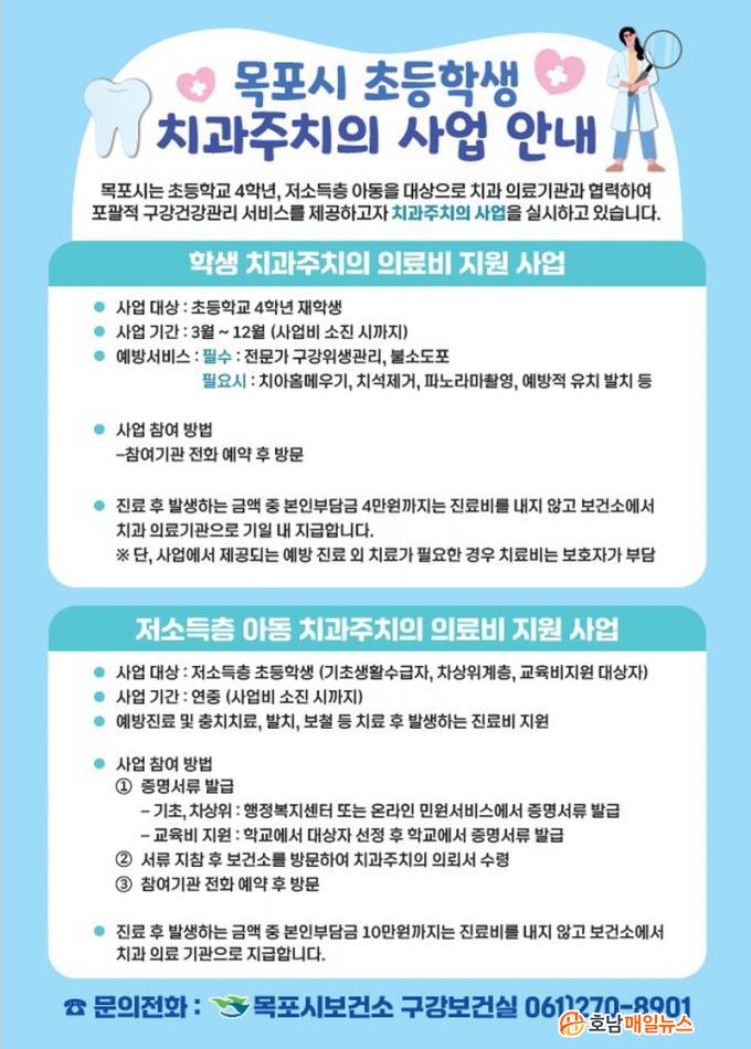 ¾Õ¼ ½Ã´Â ¸ñÆ÷³» Ä¡°ú ÀÇ·á±â°ü 33°³¼Ò¿¡ »ç¾÷ Âü¿© ½ÅûÀ» ¹Þ°í ÃʵîÇб³ 33°³¼Ò, Áö¿ª¾Æµ¿¼¾ÅÍ 41°³¼Ò µî¿¡ ¾È³»¹®À» ¹èºÎÇß´Ù.