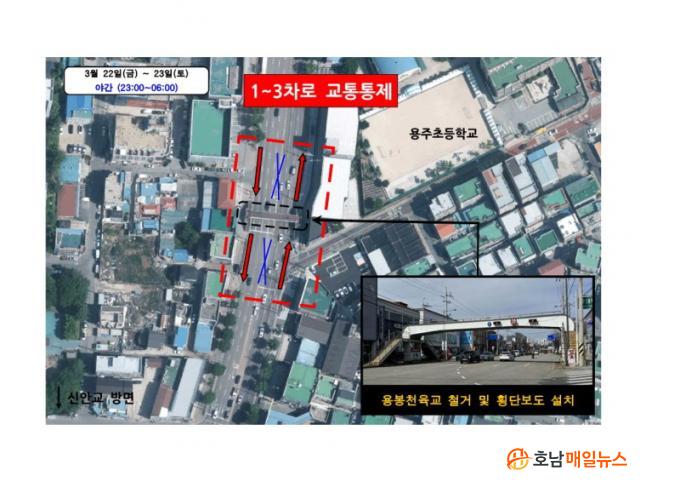 ÀÌÈÄ Áö³ÇØ 10¿ù Ưº°±³ºÎ±Ý 2¾ï 5õ¸¸ ¿øÀ» È®º¸ÇØ »ç¾÷ ¿¹»êÀ» ¸¶·ÃÇÏ¿´À¸¸ç Áö³ 2¿ù 5°³¿ù¿¡ °ÉÄ£ ¼¼ºÎ ½Ç½Ã¼³°è ¿ë¿ªÀ» ¸¶ÃÄ º» °ø»ç¿¡ µ¹ÀÔÇÏ°Ô µÇ¾ú´Ù.À̹ø ö°Å°ø»çÀÇ ÁÖ¿ä ÀÛ¾÷Àº º¸ÇàÀÚÀÇ ¾ÈÀü È®º¸¿Í Â÷·® È帧¿¡ ¹ÌÄ¡´Â ¿µÇâÀ» ÃÖ¼ÒÈÇϰíÀÚ ±³Åë ÀϺΠÅëÁ¦ ¾Æ·¡ ¾ß°£¿¡ ÀÌ·ç¾îÁö¸ç ö°Å¿¡ µû¸¥ ºÎ´ë°ø»ç´Â ¿À´Â 30ÀϱîÁö ¸ðµÎ ¸¶¹«¸®µÉ ¿¹Á¤ÀÌ´Ù. °ø»ç°¡ ¿Ï·áµÇ¸é ¿ëºÀõ À°±³´Â »ç¶óÁö°í À°±³¸¦ ´ë½ÅÇØ Ⱦ´Üº¸µµ, ½ÅÈ£µî ¼³Ä¡¿Í ÇÔ²² Àα٠Àεµ±îÁö Á¤ºñµÇ¾î ±³Åë¾àÀÚ º¸Çà ÆíÀÇ ÁõÁø°ú ¾ÈÀü»ç°í ¿¹¹æ¿¡ µµ¿ò µÉ °ÍÀ¸·Î ºÏ±¸´Â ±â´ëÇϰí ÀÖ´Ù.