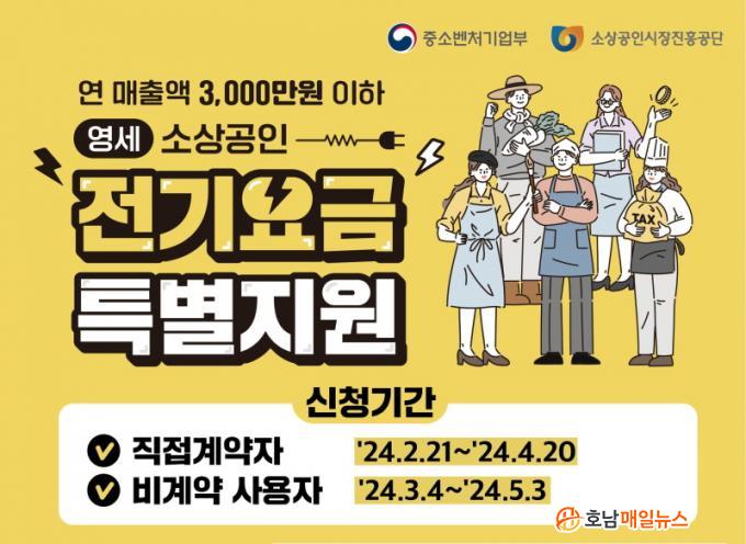 ½ÅûÀº ÇÑÀü°ú Á÷Á¢ °è¾àÀÚÀÇ °æ¿ì ¿À´Â 4¿ù 20ÀϱîÁö¸ç, ºñ °è¾à »ç¿ëÀÚ´Â 5¿ù 3ÀϱîÁö ¿Â¶óÀÎ °£Æí½Åû(www.¼Ò»ó°øÀÎÀü±â¿ä±ÝƯº°Áö¿ø.kr)À» ÅëÇØ ÇÏ¸é µÈ´Ù. ¿Â¶óÀÎ ½ÅûÀÌ ¾î·Á¿ì¸é Àü³²Áö¿ª ¼Ò»ó°øÀνÃÀåÁøÈï°ø´Ü 4°³ Áö¿ª¼¾ÅÍ(¸ñÆ÷¡¤¼øÃµ¡¤¿©¼ö¡¤³ªÁÖ)¿¡ ¹æ¹®ÇÏ¸é µµ¿òÀ» ¹ÞÀ» ¼ö ÀÖ´Ù.