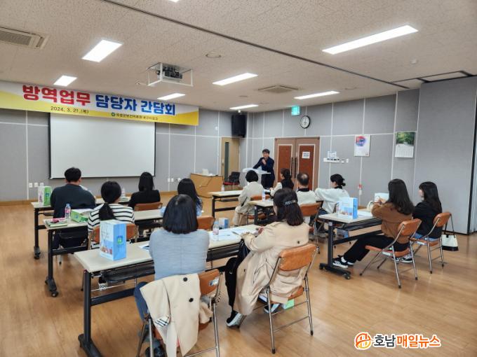 À̳¯ °£´ãȸ¿¡´Â ¹æ¿ª´ã´çÀÚÀÇ ¾÷¹«¼öÇà ´É·ÂÀ» Çâ»ó½ÃŰ°í ¿øÈ°ÇÑ ¹æ¿ª¼Òµ¶¾÷¹« ¼öÇàÀ» À§ÇØ ¹æ¿ª ¾àǰ Ãë±Þ°ú ¹æ¿ªÀåºñ »ç¿ë¿¡ µû¸¥ ¾ÈÀü»ç°í ¿¹¹æ, ¹æ¿ª¼Òµ¶ ½Ã ÁÖÀÇ»çÇ× µî ÇöÀå¿¡¼ ½ÇÁúÀûÀ¸·Î ÇÊ¿äÇÑ ½Ç¹«±³À°À¸·Î ÁøÇàµÆ´Ù.