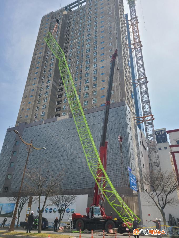 Áö³ 22ÀÏ ¿ÀÀü 11½Ã 40ºÐ°æ ¸ñÆ÷½Ã »óµ¿ÀÇ ¾ÆÆÄÆ® °ø»çÇöÀå¿¡¼ °Ç³¿¡ ÀÇÇØ Ÿ¿öÅ©·¹ÀÎÀÌ ÈÖ´Â »ç°í°¡ ¹ß»ýÇß´Ù. ÀθíÇÇÇØ´Â ¾ø¾úÀ¸³ª Å©·¹ÀÎ »óÆÇ ÀϺΠ±¸Á¶¹°ÀÌ ¶³¾îÁö¸é¼ ÁÖº¯ ¼÷¹Ú¾÷¼Ò ÁöºØ ÀϺΰ¡ ÈѼյǰí Â÷·® 5´ë°¡ °æ¹ÌÇÏ°Ô ÆÄ¼ÕµÆ´Ù.
