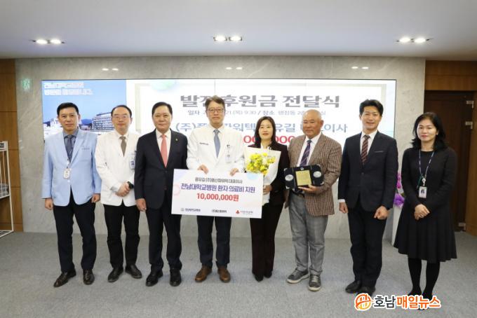 Á¤Áø Àü³²´ëº´¿øÀåÀº ¡°È«À¯±æ (ÁÖ)dz»êÆÄ¿öÅØ ´ëÇ¥²²¼ Àü³²´ëº´¿ø¿¡ ³²´Ù¸¥ °ü½É°ú ¾ÖÁ¤À¸·Î ¼º±ÝÀ» º¸³»Áּż °¨»çµå¸°´Ù¡±¸ç, ¡°¾î·Á¿î ȯÀڵ鿡°Ô Èñ¸Á°ú ¿ë±â°¡ µÉ °ÍÀÌ´Ù¡±¶ó°í ¸»Çß´Ù.
