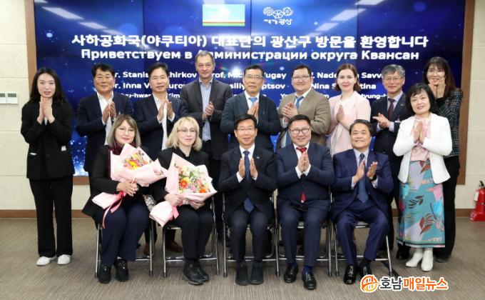 ±¤ÁÖ¸¦ ´ëÇ¥ÇÏ´Â ±¹Á¦µµ½Ã·Î ¼ºÀåÇϰí ÀÖ´Â ±¤»ê±¸¿ÍÀÇ ±¹Á¦±³·ù¸¦ ÇùÀÇÇϰíÀÚ ±¸Ã»À» ¹æ¹®ÇÑ ´ëÇ¥´ÜÀº »çÇÏ °øÈ±¹ 34°³ ±º Áß ÇϳªÀÎ ÇѰ¥¶ó½º¿ï·ç½ºÀÇ ¿Ã·º V. À̸®³×¿¹ÇÁ ÁÖÁö»ç Ä£¼¸¦ ¹Úº´±Ô ûÀå¿¡°Ô Àü´ÞÇß´Ù.