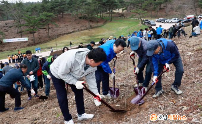 À̳¯ Çà»ç¿¡ ±¸º¹±Ô ±º¼ö¸¦ ºñ·ÔÇÑ ±ºÃ» °ø¹«¿ø, ȼø±ºÀÇȸ, ȼø¼Ò¹æ¼, ÀÓ¾÷ÀÎ, Áö¿ªÁֹΠµî 450¿© ¸íÀÌ Âü¿©ÇØ Ãá¾ç¸é ´ë½Å¸® ÀÓ¾ß 1.5ha¿¡ »êº¢³ª¹« 2,500±×·ç¸¦ ½É¾ú´Ù.