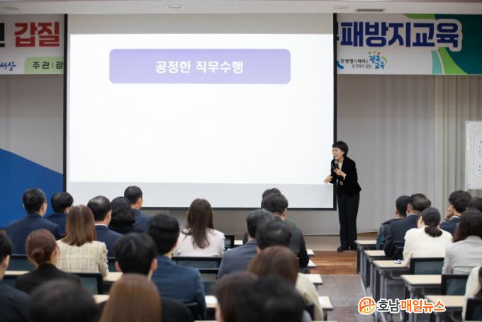À̹ø ±³À°Àº ÃÖ±Ù °©Áú ¹®È°¡ Á÷¿ø °£ÀÇ ¼öÁ÷Àû °ü°è»Ó¸¸ ¾Æ´Ï¶ó ¼öÆòÀû °ü°è¿¡¼µµ ¹ß»ýÇϰí ÀÖ¾î °©Áú¿¡ ´ëÇÑ ÀÎ½Ä ÀüȯÀÌ ÇÊ¿äÇØ ±³À°À» ¸¶·ÃÇÏ°Ô µÆ´Ù. ±³À°Àº ±¹¹Î±ÇÀÍÀ§¿øÈ¸ ¹Ú¿¬Á¤ û·Å±³À° Àü¹®°»ç¸¦ ÃʺùÇØ ¡®°©Áú ±ÙÀý °ü·Ã Çൿ°·É µî ºÎÆÐ¹æÁö±³À°¡¯À» ÁÖÁ¦·Î ÀÌ·ïÁ³´Ù. ¡ã±¤ÁÖ±¤¿ª½Ã±³À°Ã» °ø¹«¿ø Çൿ°·É ¡ãûʱÝÁö¹ý ¡ãÀÌÇØÃæµ¹¹æÁö¹ý ³»¿ëÀ» ÀÌÇØÇϱ⠽±°Ô »ç·Ê Áß½ÉÀ¸·Î ½Ç½ÃÇß´Ù.