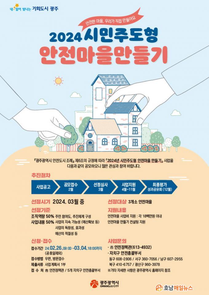 ½Ã¹ÎÁÖµµÇü ¾ÈÀü¸¶À» ¸¸µé±â »ç¾÷Àº ¡®¾ðÁ¦ ¾îµð¼³ª ¾ÈÀüµµ½Ã ±¤ÁÖ¡¯¸¦ ½ÇÇöÇϱâ À§ÇØ ½Ã¹ÎÀÌ ÁÖü°¡ µÅ »îÀÇ ÀÏ»ó °ø°£ÀÎ ¸¶À»ºÎÅÍ ¾ÈÀüÃë¾àºÐ¾ß¸¦ °³¼±ÇÏ°í ¾ÈÀüÇÑ °øµ¿Ã¼¸¦ ¸¸µå´Â »ç¾÷À¸·Î, Áö³ÇغÎÅÍ ÃßÁøÇϰí ÀÖ´Ù.
