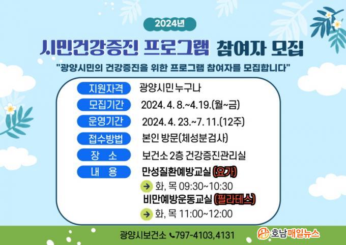 ±âŸ ÀÚ¼¼ÇÑ »çÇ×Àº ±¤¾ç½Ãº¸°Ç¼Ò °Ç°ÁõÁø½Ç(¢Ï061-797-4103, 4131)·Î ¹®ÀÇÇÏ¸é µÈ´Ù.
