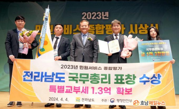 Àü³²µµ´Â 4ÀÏ Á¤ºÎ¼¿ïû»ç¿¡¼ ¿¸° ¡®2023³â ¹Î¿ø¼ºñ½º Á¾ÇÕÆò°¡ ½Ã»ó½Ä¡¯¿¡¼ ±¹¹«ÃѸ® ±â°üǥâ°ú ÇÔ²² Æ÷»ó±ÝÀ¸·Î Ưº°±³ºÎ¼¼ 1¾ï 3õ¸¸ ¿øÀ» È®º¸Çß´Ù.