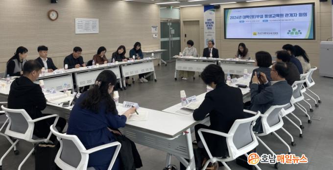 ȸÀÇ¿¡¼± µµ³» 11°³ ´ëÇÐ(¿ø)ºÎ¼³ Æò»ý±³À°¿øÀÌ Âü¿©ÇÑ °¡¿îµ¥, Àü³² Æò»ý±³À° Ȱ¼ºÈ »ç¾÷¿¡ ´ëÇÑ ÀǰßÀ» ³ª´©°í, ´ëÇÐ(¿ø)ºÎ¼³ Æò»ý±³À°¿ø ÇöȲ ¹× ´ëÇк° 2024³â Áַ»ç¾÷À» °øÀ¯Çß´Ù.