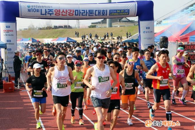 ¿ÃÇØ·Î 10ȸ°¸¦ ¸Â´Â ³ªÁÖ ¿µ»ê° ¸¶¶óÅæ´ëȸ´Â ±¤ÁÖ¡¤Àü³² ½Ãµµ¹Î°ú Àü±¹ ¸¶¶óÅæ µ¿È£È¸¿ø µî 3000¿©¸í¿¡ ´ÞÇÏ´Â ¸¶¶óÅä³Ê°¡ Âü¿©ÇØ Áö¿ªÀ» ´ëÇ¥ÇÏ´Â ½ºÆ÷Ã÷´ëȸ·Î ÀÚ¸®¸Å±èÇß´Ù. ƯÈ÷, ÃʵîÇлýºÎÅÍ 70´ë °í·É, Àå¾ÖÀÎ, ¾î¸° Àڳฦ À¯¸ðÂ÷¿¡ ÅÂ¿î ºÎ¸ð±îÁö °¢¾ç°¢»öÀÇ Âü°¡ÀÚµéÀÌ ´«±æÀ» ²ø¸ç ´©±¸³ª ½±°Ô Âü¿©ÇÒ ¼ö ÀÖ´Â ½ºÆ÷Ã÷·Î¼ ¸¶¶óÅæÀÇ ¸Å·ÂÀ» ´À³¢°Ô Çß´Ù.