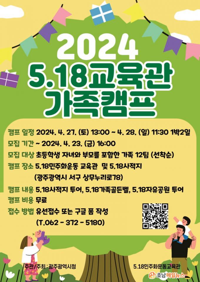±¤ÁÖ¡¤Àü³²Áö¿ª ÃʵîÇлý ÀÚ³à¿Í ºÎ¸ð¸¦ Æ÷ÇÔÇÑ °¡Á·À̸é Âü°¡ÇÒ ¼ö ÀÖ´Ù. Ä·ÇÁ Âü°¡ºñ¿ëÀº ¹«·áÀ̸ç, ¼±Âø¼ø 12°¡Á·À» ¸ðÁýÇÑ´Ù. ½ÅûÀº 5¡¤18±³À°°ü(062-372-5180)À̳ª ±¸±Û ÆûÀ¸·Î ¿À´Â 23ÀÏ ¿ÀÈÄ 4½Ã±îÁö ÇÏ¸é µÈ´Ù.