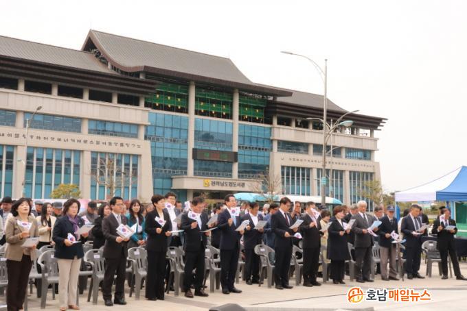 ¡®»õº®À¸·Î °¡´Â ±æ¡¯À̶ó´Â ÁÖÁ¦·Î ¿¸° À̹ø ±â³ä½Ä¿¡´Â Àü³²¼ºÎ¡¤µ¿ºÎº¸ÈÆÁöûÀå, Àü¶ó³²µµÁö»ç, ¹«¾ÈºÎ±º¼ö, ±¤º¹È¸ Àü¶ó³²µµÁöºÎÀå, º¸ÈÆ´ÜüÀå ¹× È¸¿ø, ¸ñÆ÷¿µÈÁßÇб³ Çлý µî 200¿© ¸íÀÌ Âü¼®ÇÑ °¡¿îµ¥ ¡â±¹¹ÎÀÇ·Ê ¡â´ëÇѹα¹ÀÓ½ÃÇåÀå ¼±Æ÷¹® ³¶µ¶ ¡â¾à»çº¸°í ¡â±â³ä»ç ¡â±â³ä°ø¿¬ ¡âµ¶¸³±º°¡ Á¦Ã¢ ¡â¸¸¼¼»ïâ ¼øÀ¸·Î °ÅÇàµÇ¾ú´Ù.