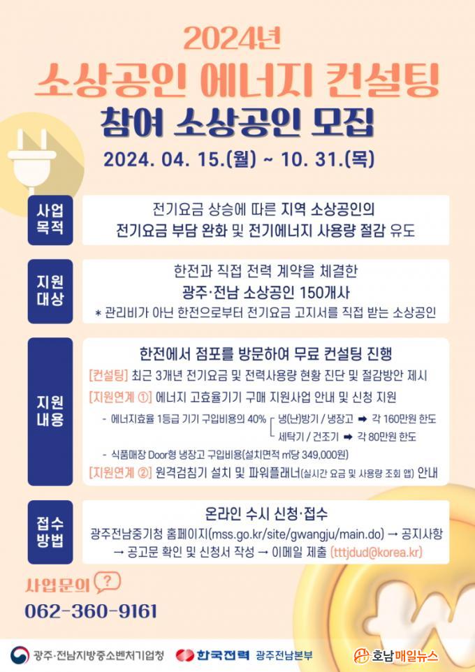Áö¿ø´ë»óÀº ÇÑÀü°ú Á÷Á¢ Àü·Â°è¾àÀ» ü°áÇÑ ±¤ÁÖ¡¤Àü³²Áö¿ª ¼Ò»ó°øÀÎÀ¸·Î º°µµÀÇ ¼±Á¤ÀýÂ÷ ¾øÀÌ ¼ö½Ã ¸ðÁýÇÑ ÈÄ 150°³»ç¸¦ ¹«·á Áö¿øÇÒ °èȹÀÌ´Ù.