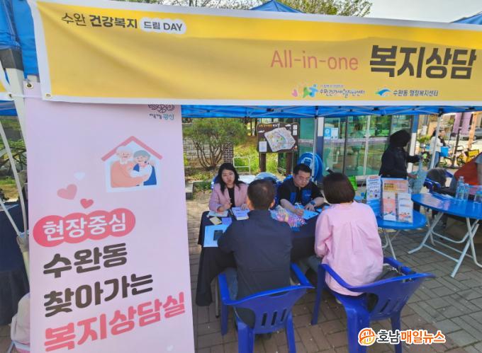 ù Çà»ç·Î 12ÀÏ ÁֹΠ300¿© ¸íÀÌ Âü¼®ÇÑ °¡¿îµ¥ ¼ö¿Ïµ¿ ÇàÁ¤º¹Áö¼¾ÅÍ¿¡¼ ÇÊ¿äÇÑ º¹Áö¿Í º¸°Ç Á¤º¸¸¦ Á¦°øÇÏ´Â ¡®º¹Áö ÅëÇÕ(¿ø½ºÅé) »ó´ã¡¯°ú Ç÷¾Ð, Ç÷´ç, ½ºÆ®·¹½º µî °Ç°ÃøÁ¤ ¼ºñ½º µîÀ» ÁøÇàÇß´Ù.